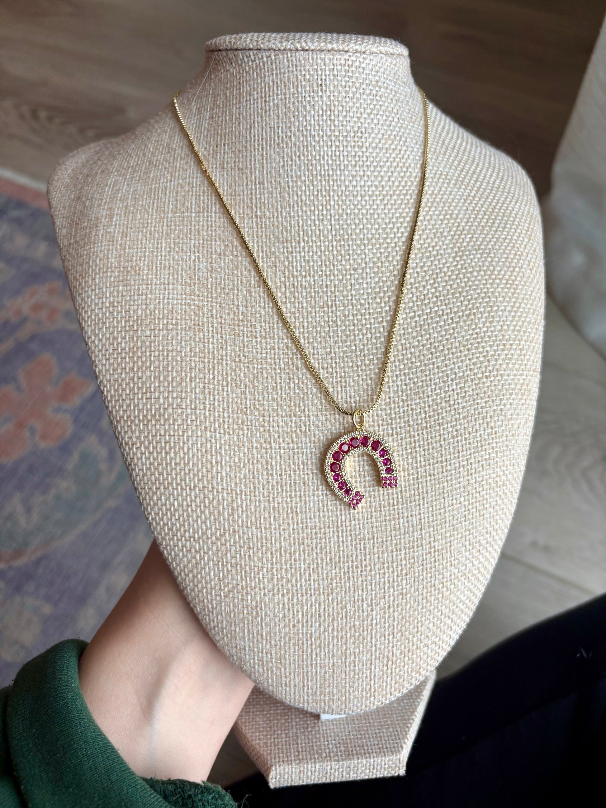 Designed for the girl who moves through life with intention, softness, and a hint of wanderlust, this necklace layers effortlessly with your favorites or stands beautifully on its own. The adjustable box chain (19.68") catches the light with every step, while the CZ-dusted horseshoe pendant (21.5 mm) glows with a warm, golden radiance.